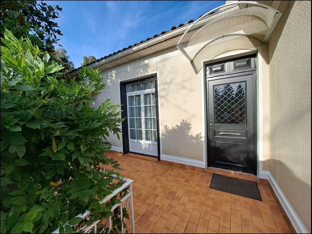 -Chambre de 15 m² avec une porte-fenêtre vers terrasse couverte, sol carrelé