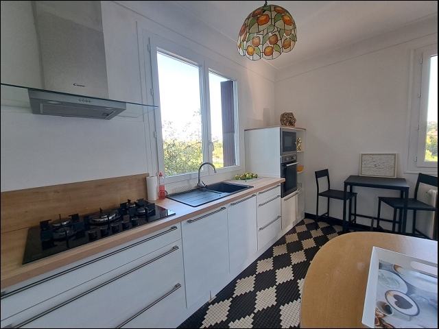 -Cuisine de 7,70 m² avec placard, sol carrelage ancien