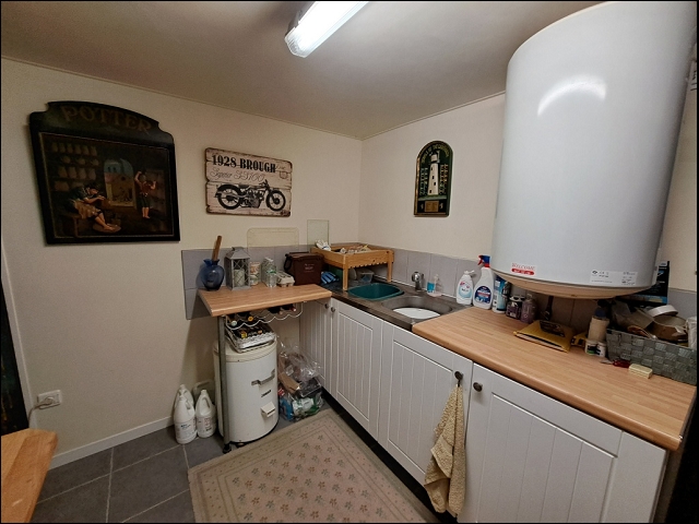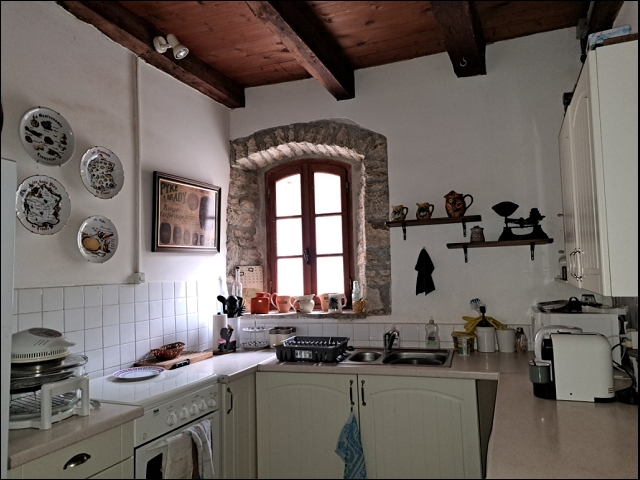 -Cuisine équipée de 6,80 m² avec placards, poutres apparentes