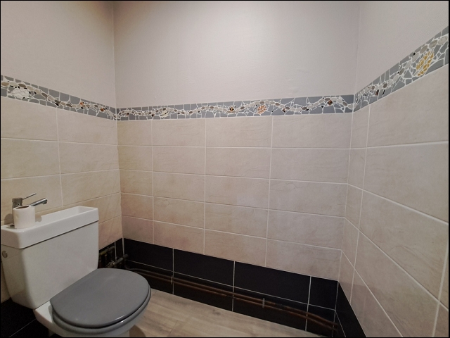 -WC de 1,90 m², murs carrelés, sol stratifié